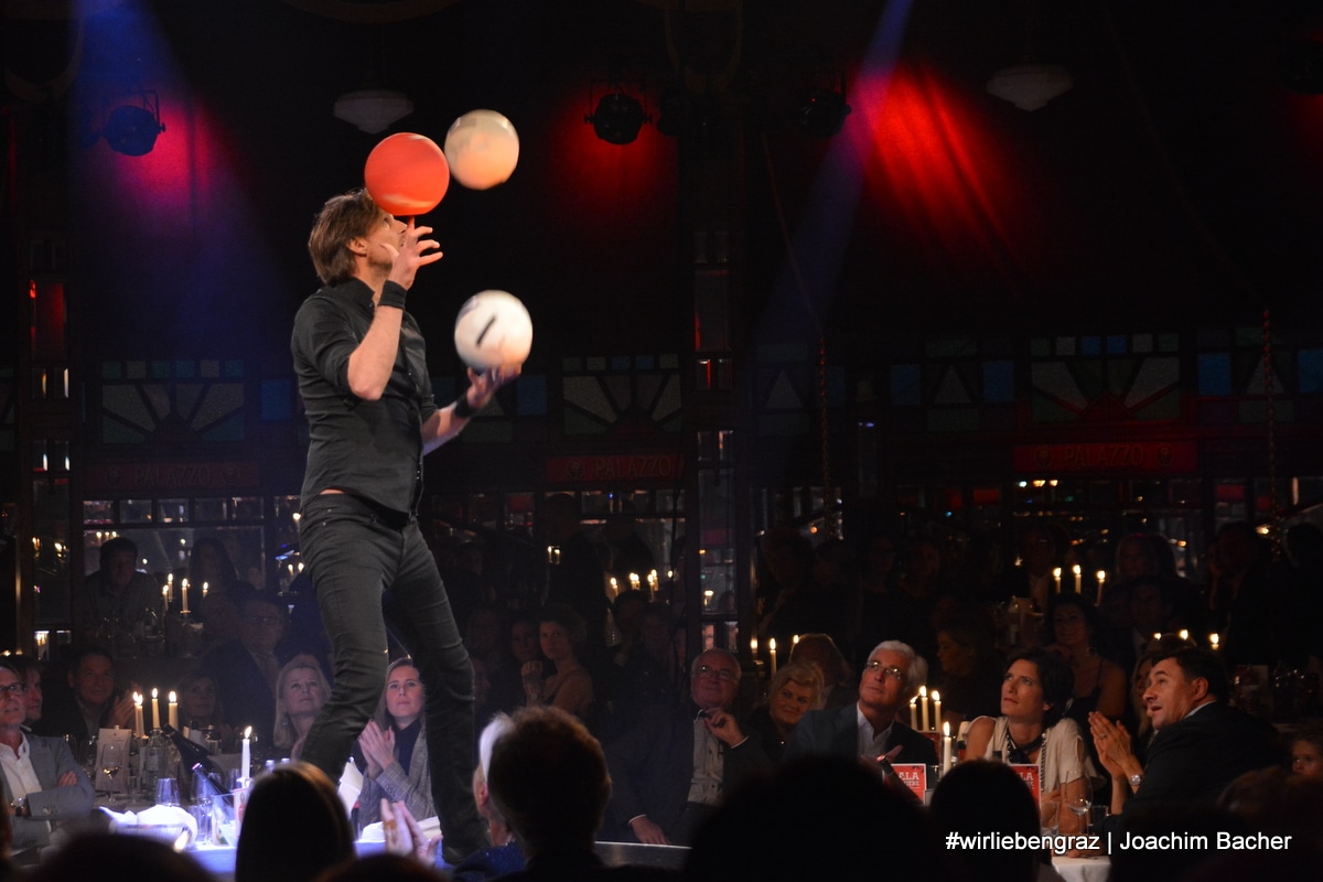 „Global Players“, so heißt das neue Showprogramm, bei dem wortwörtlich, die ganze Welt des Varietés das Palazzo in Graz besucht. Die Crème de la Crème der Artistik aus aller Welt gastiert im Palazzo. Andreas Wessels, ein Entertainer und Jongleur, der von Sänger und Entertainer Aron Eloy und dem ukrainischen Comedian Kotini Junior unterstützt wird, führt durch ein schwungvolles Programm, voller artistischer Spitzenleistungen.